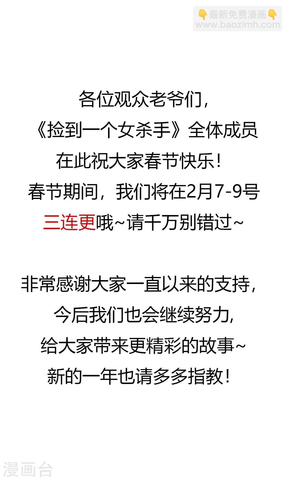 捡到一个女杀手漫画“2月2日公告”在线免费观看下拉式阅读,五色漫画